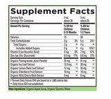 Organic Agave Syrup, Organic Glycerin, Water, Organic Pomegranate Juice Powder, Vitamin C, Organic Ivy Leaf Extract, Organic Lemon Balm Leaf Extract, Organic Elderberry Fruit Extract, Wild Cherry Bark Extract, and Zinc.